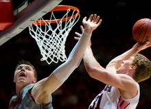 The points in the paint came in a variety of ways. There was Olsen and Bachynski. Delon Wright slashed his way through the defense for layups. Princeton Onwas got out on the fast break forlayups. There was Jordan Loveridge on post-ups and dives to the rim.
