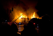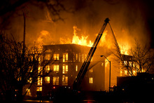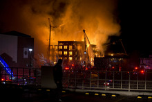 The exposed wood of the unfinished building allowed the fire to spread fast through the more than 40-foot-tall structure. Firefighters turned their priorities to keeping neighboring buildings safe as the multi-residential project went up in flames. Onlookers could feel the heat from half a block away.