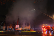 No one was reported injured in the blaze. Crews stayed through the night to mop up hot spots and were still dousing flare-ups at dawn.