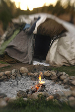 Navarro took some last bites of food and last drinks of water and entered the sweat lodge. Only he fasted. His wife and the veterans took turns keeping a fire going so the lodge was warm, though not as hot as it is during a sweat.