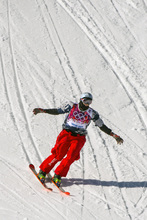 Gus Kenworthy, of Telluride, Colo., competes in the men's ski slopestyle competition at Rosa Khutor Extreme Park during the 2014 Sochi Olympics Thursday February 13, 2014. Joss Christensen, of Park City, Utah, won the gold medal with a score of 95.80. Gus Kenworthy, of Telluride, Colo., won the silver with a 93.60. Nick Goepper, of Lawrenceburg, Ind., won the bronze with a 92.40. It marked only the third time that the United States has swept the medals in an Olympic Winter Games event.