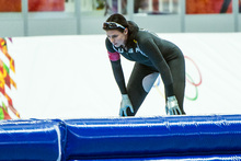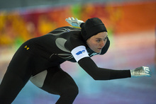 Brittany Bowe, of West Jordan, competes in the women's 1,000 meter speed skating race at Adler Arena Skating Center in the during the 2014 Sochi Olympics Thursday February 13, 2014. Bowe finished in eighth place with a time of 1:15.47.