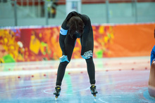 Brittany Bowe, of West Jordan, reacts after competing in the women's 1,000 meter speed skating race at Adler Arena Skating Center in the during the 2014 Sochi Olympics Thursday February 13, 2014. Bowe finished in eighth place with a time of 1:15.47.