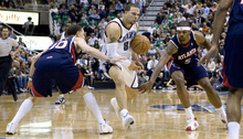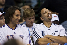 Deron Williams and Steve Nash talk before the NBA All-Star Skills Competition at the American Airlines Center Saturday. Williams finished in second place behind Steve Nash.