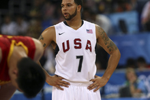 USA's Deron Williams during the game at the Olympic Basketball Gymnasium in Beijing, Sunday, August 11, 2008. USA defeated Chian 1