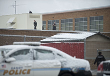 Police search Sandy Elementary School for a burglary suspect as the school was on lockdown Wednesday, Feb. 19, 2014. Multiple parents had heard word of a bomb threat, which police did not confirm.