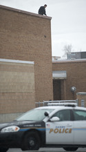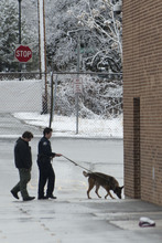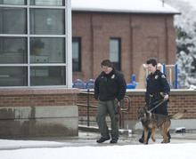 Police K-9 units search Sandy Elementary School for a burglary suspect as the school was on lockdown Wednesday, Feb. 19, 2014. Multiple parents had heard word of a bomb threat, which police did not confirm.