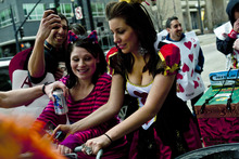 Team "Let's Get Physical" at Duffy's Tavern along the route of the 6th Annual Salt Lake City Urban Iditarod, Saturday, March 2, 2013, throughout downtown Salt Lake City. Teams of of mushers pulled sleds in the form of shopping carts from watering hole to watering hole.