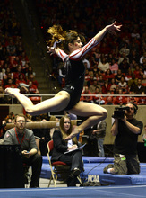 Tutka, who sat out the floor lineup against Stanford with a sore Achilles tendon, wasn't expected to compete on the event Saturday for precautionary reasons. However, she felt good enough to go and scored a 9.875.