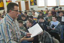 Artistic director Brady Allred conducts members of the Salt Lake Choral Artists and the Youth Honor Choir sing during a rehearsal at the Salt Lake Choral Artists Building Saturday January 5, 2013.