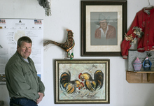 In a semi-rural area of Bluffdale, Fitzgerald tends what looks like a small city of roosters. In a grassy yard, about 20 birds are tethered to the ground, each just out of reach of the others. In rows of coops, dozens more keep up a constant chorus of crowing. As Fitzgerald surveys the scene, he points to the food, water and fresh bedding near the animals.
