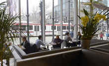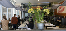 Situated on the ground floor of Main Street's shiny new 222 building, the restaurant flaunts a stylish minimal feel. Half the restaurant is flanked by floor-to-ceiling windows and is decked out in steelish modern grays with pops of mixed colors throughout. Should you eschew the front area's excellent people watching, the chic banquettes and booths are perfect for a discreet romantic date, too.