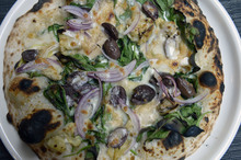 In refusing to be pinned down, the menu offers flexibility, though. If you want to keep things light, start with a wonderfully garlicky Little Gem Caesar Salad ($7). A side sliver of crisp bread stands in for the missing croutons adding texture, thankfully without ever threatening to crack a tooth. Pizza from the wood oven is of the thin-crust variety, and a Margherita pizza ($11) I sampled was pleasantly restrained with just a daub of San Marzano tomatoes, fresh mozzarella and basil. Still keeping things light, a pan roasted Idaho sturgeon ($25) was well executed, too, coming with celery root puree, pickled mushrooms and caramelized fennel.