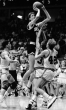 After repeating his manta "Bounce, bounce; nothin' but net" Brown drilled both free throws.
