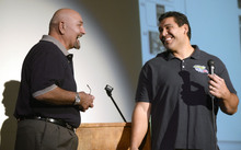 Former NFL players Luther Elliss, who starred at the University of Utah, and Mark Koncar, who as born in Murray, joined other leaders as Granite Park Junior High played host to a breakfast and an assembly.