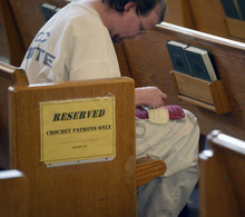 At the Oquirrh Chapel, I thought about the thin threads again. That's where volunteer Nancy Webster was working with inmates who participate in the crochet project, making blankets and other items that end up in the hands of local nonprofits and hospitals but also as far away as a women's shelter in Uganda.
