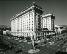 The Hotel Utah stands at the corner of South Temple and Main Street in this 1985 photo.