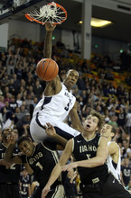 The Utah State senior center has become well-known for his versatile offensive game: the spins into the post, the baby hooks over opponents, the step-back jumpers. Although there's almost an uncomfortable pause inside the Spectrum when Shaw takes a shot from beyond 15 feet, he's drained a few. At the free-throw line, he's one of the best shooters on the team.