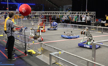 Robots compete in "Aerial Assist," competition at the Maverick Center, Saturday, M