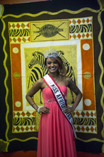 Miss Zimbabwe Winnet Murahwa smiles during a crowing ceremony at One World Gifts in Sugar