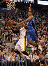 He got his chance in real life on Saturday night. Before 19,228 at EnergySolutions Arena, Burke hit the game-winner, a dagger from the corner over Orlando's Victor Oladipo. The shot gave the Jazz an 89-88 victory over the Magic and broke a six-game losing streak.
