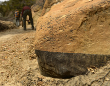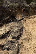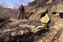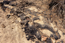 Clambering up the gully Saturday, local outfitter Nate Waggoner tried to reconstruct how the liquid moved. He noted the telltale stains left as the oil poured over sandstone blocks and logs before hitting Little Valley Wash. The spill now smothers a 1.5-mile stretch of the wash's sandy bed under a crumbly, squishy carpet of tar six inches deep.