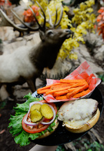 Wild game at Cabela's, Lehi • Inside this massive outdoor gear emporium, customers can admire the life-size taxidermied deer, moose, wolves and bighorn sheep and then when they get hungry, head to the cafeteria-style restaurant for an elk or bison burger or wild boar deli sandwich. Occasionally there might even be an ostrich special on the menu, said employee Butch Greenfield. The elk burger and bison are similar in taste to beef, said Greenfield. And the boar will appeal to those who like ham, but with a more intense flavor. The burgers and sandwich are $6.99 or $7.99 to $8.99 with sides and a drink.