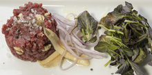 The yak options change seasonally at Hearth on 25th. The spring menu includes a yak tartare appetizer made with white anchovies, caper berries, red onions and watercress ($32) as well as seared yak tenderloin served Szechwan style with vegetables, garlic pepper sauce and steamed brown rice.($44). Rabbit, farmed in central Utah and fricasseed with bacon, onions, green tomatoes and serrano fig jam, also is available. ($30)