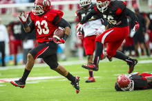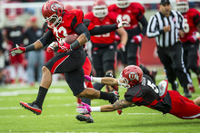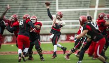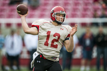 That's because if they failed to achieve a first down in four tries, officials re-spotted the ball and gave them another shot. But even if the deck hadn't been stacked in their favor, the guys in red would have treated fans to glimpses of promise in Utah's first spring scrimmage Friday afternoon.