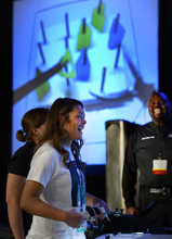 So the students Saturday competed in Super Monkey Ball, a video game Rosser says tests the skills of a surgeon better than any other available. They dropped beans into a cup with a small hole in it using long pincers and a video screen, and, with pincers, moved colored plastic triangles from peg to peg.