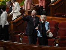 Senior apostle Boyd K. Packer, next in line for the church's presidency, shared a testimony of what he has "learned and experienced in nearly 90 years of life and over 50 years as a [Mormon] general authority," including knowing for sure that Jesus Christ lives and that everyone can learn that.