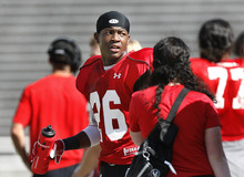 That's not because Scott, who suffered a season-ending ankle injury in the Utes' opener against Utah State last year, isn't 100 percent. He could play today. And given that the team's "Spring Prospectus" bills him as an all-conference candidate, it's pretty darn likely not an indication of his abilities. But coaches have decided to be cautious and keep Scott out of live work, and as such: "I haven't seen him play," said new receivers coach Taylor Stubblefield.