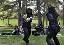 The sound of swords on shields rang through Liberty Park on Saturday as members of the United Clans Swordsman Association competed in European martial arts.