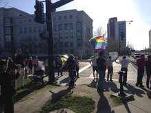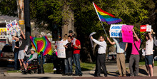 Nearby, Scot and Genie PostvanderBurg stood with their three young children. Scot said the family decided to come to the rally because they have gay relatives on both sides and because they wanted to set an example for their kids.