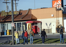 The woman stops for breakfast at McDonald's by Home Depot on 2100 South near I-15 in Salt Lake City. But she parks near a cluster of day laborers seeking work standing along the busy street's sidewalk.