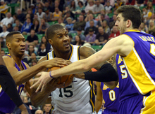 About the Lakers • Have shut down forward Pau Gasol for the rest of the season. … Trail the Jazz 2-1 in the season series.