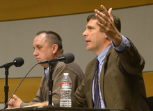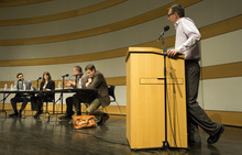 Those were the two opposing views presented Wednesday night during a panel discussion at the downtown Salt Lake City Main Library. On one side, American Atheists President David Silverman and author, ex-Mormon and ex-polygamist Joanne Hanks argued that religion basically brainwashes its members. Silverman, in particular, came out swinging, repeatedly describing the faithful as "victims" of their respective religions.