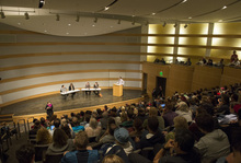 Toward the end of the discussion, Mormon history came up after several audience members submitted questions critical of the way the LDS Church deals with the topic. Both BYU professors essentially seemed to concede the point, at least as far as the past goes, but said their church has recently begun a new chapter of openness and honesty.