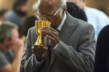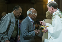 Lall could repeat the ancient prayers and ceremonies in a new land: Foot-washing, taking communion, carrying the cross, tracing the "stations of the cross," experiencing darkness in the sanctuary, followed by lit candles, a flood of light, and then, hallelujah.