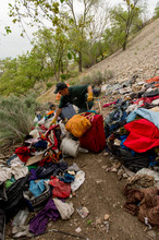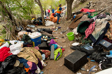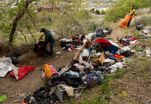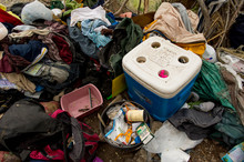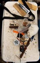 Items found in an encampment. Salt Lake County Health Department and inmates doing community service spent the day cleaning out homeless encampments on the north side of Salt Lake City, Tuesday April 22, 2014.