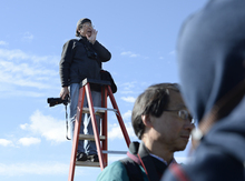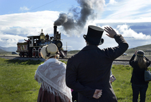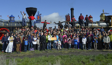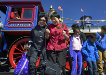 Saturday's visit and photograph, he said, "is as an act of photographic justice." The photographer worked with a Utah-based coalition, the Chinese Transcontinental Railroad Commemoration Project, to bring the group together on Saturday. He had the 200, including visitors from China's Guandong Province, pose in front of the replica locomotives, as he did when a similar group came to the anniversary celebration in 2002.