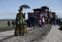 They were going for an iconic photo of their own, one to match the "champagne" photograph that has come to symbolize the celebration that day long ago when the Central Pacific from the West and Union Pacific from the East met on the windswept desert north of the Great Salt Lake.