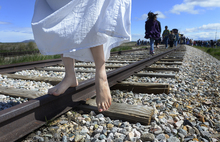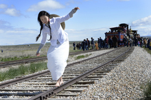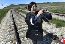 Zhao, an immigrant from Mongolia, has been immersing herself in the history of the Chinese workers and immigrants, and performed a dance of prayer Saturday on the rails.