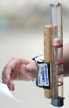 Churchill Junior High School students wear accelerometers on their wrists as they measure the force they experience on the Colossus Fire Dragon roller coaster during Utah State University Physics Day at Lagoon Farmington, Utah Friday, May 16, 2014.