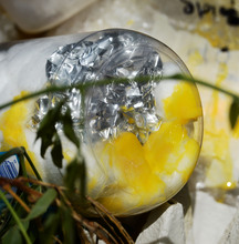A container oozes egg yolk after being dropped from the Sky Ride during the Egg Drop ev