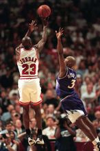 The push-off, need we say more? Utah fans still hold the grudge that Jordan "pushed off" of Jazz guard Bryon Russell on the game-winning jumper in Game 6 of the 1998 Finals. Push or no push, Russell tumbled to the floor and Jordan provided an iconic NBA Finals moment, sinking the shot and sealing the title for the Chicago Bulls. The jumper ended Utah's two year reign in the NBA Finals and was the icing on the cake for Jordan's legendary career.