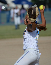 Taylorsville pitcher Aseneca Lesuma lets it fly against Lehi during the 5A softball championship at the Valley Softball Complex in Taylorsville on Thursday, May 22, 2014.