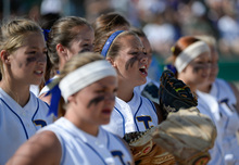 Lehi celebrates their championship win over Taylorsville for the 5A softball championship at the Valley Softball Complex in Taylorsville on Thursday, May 22, 2014.