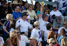 A Lehi fan raises his prize as his team battles Taylorsville for the 5A softball cham