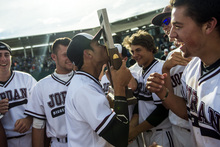 Winning its second state baseball title in school history, Jordan (25-5) beat Pleasant Grove 4-3 at Utah Valley University to capture the crown. Earlier in the day, by the same score, the Vikings had forced the Beetdiggers into another game to decide the double-elimination state tournament.